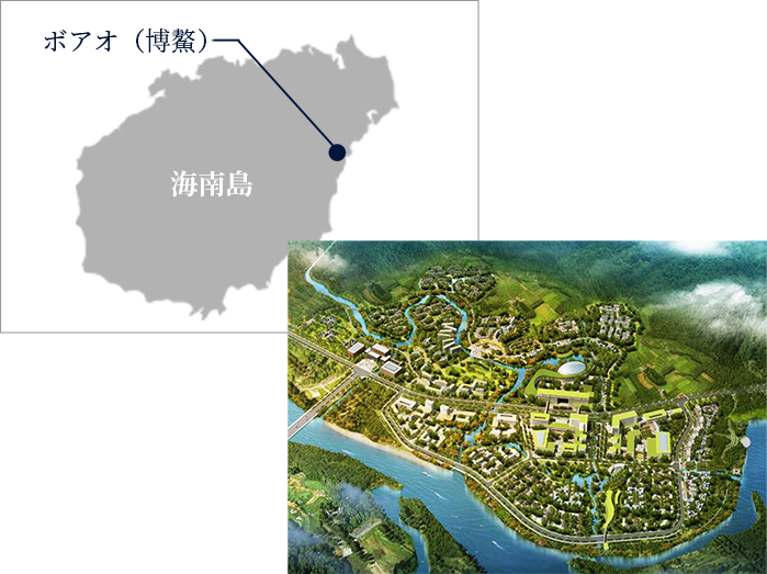 海南島東岸にあるボアオは、以前は海南島民ですら知らない寒村でしたが、「アジア版ダボス会議」とも呼ばれるボアオ・アジア・フォーラムの誘致・開催などを契機に激変し、国際的ホテルやリゾート施設を擁する中国有数の複合リゾート地として発展を遂げました。2013年2月末日、中国国務院が「海南博鰲楽城国際医療旅遊先行区」を認可。当時としては先進的な9ケ条の条項が示され、それに基づき、海南省政府が率先してこのエリアの整備に当たっています。